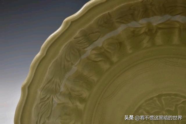 明洪武龍泉青釉刻花紋帶《吉,王》折沿大盤《珍品》