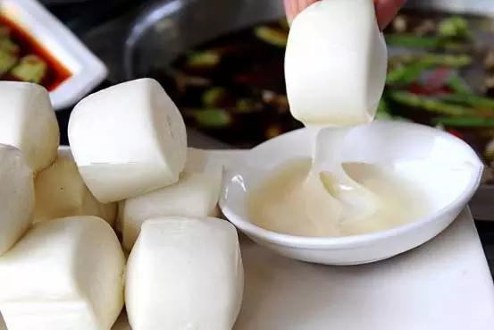 將白糖用熱水溶化,放入糯米粉中調制成糊狀,倒入涂過油的盤內,上籠蒸熟,冷卻后撒上白糖、桂花,切成菱形小塊即成,色澤玉白,香甜糯滑。城隍廟綠波廊餐廳名點。