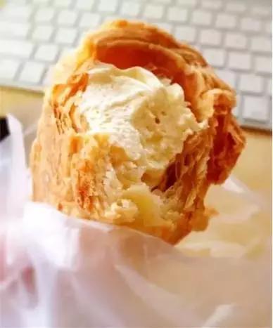其實它就是上海人的手指泡芙。一層又一層疊蓋的硬酥皮里,包裹著鮮奶油。吃哈斗的時候,一口咬下去,有巧克力,有酥皮面包,還有奶油,仿佛什么都有了。