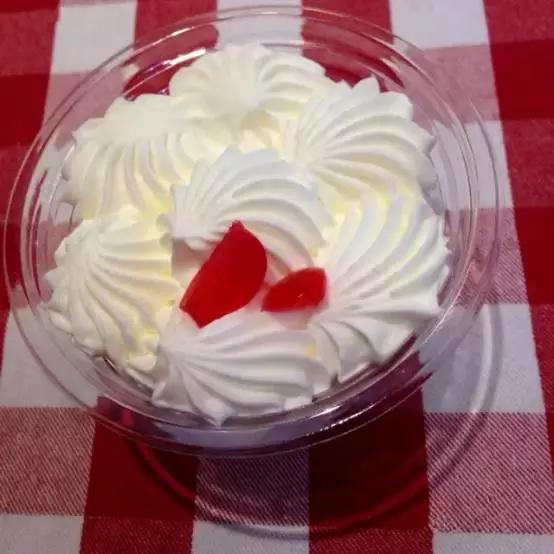 上海人喜歡吃奶制品,一度還要分“鮮奶油派”和“摜奶油派”。摜奶油又稱攪打稀奶油,是把新鮮奶油添加穩定劑后再經過加入蔗糖和空氣等工序后制成的一種乳制品,放了塑料杯中可以直接吃。