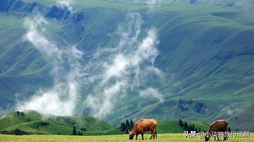 西:天山最美的風景喀拉峻草原原生態,自然美?!翱笔枪_克語,意思是“山脊上的莽原”??绞且粭l東西走向綿延的山嶺,它的兩側是溝壑梳狀密布的山地,海浪一樣起伏的山勢,鋪了綢緞一樣柔美,還有茂密的原始云杉林,一覽遠處雪山風情。