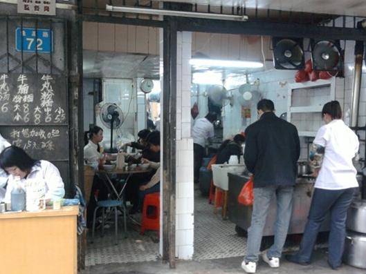 這是一間連招牌都沒有的小食店,簡陋的鋪面,生意卻異常火爆,甚至食客很多都是蹲在門口旁邊的木板凳就吃起來了。